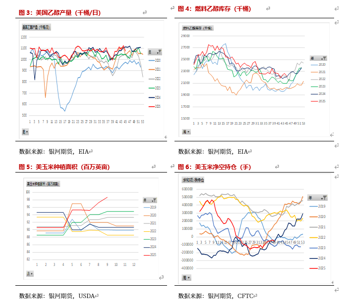11月报告美玉米面积不变,单产下调。25/26年美玉米面积9870万英亩左右,和9月数据持平,远高于去年9090万英亩。美玉米11月单产186蒲/英亩,低于9月的186.7蒲/英亩,高于去年同期的179.3蒲/英亩。后期可能会继续下调单产,美玉米03合约底部震荡。美玉米目前乙醇产量处于高位,且燃料乙醇库存持续下降,美玉米净空持仓也在减少,截止10月7日,美玉米净空持仓-9.2万手,美玉米03合约预计430美分/蒲附近支撑较强。