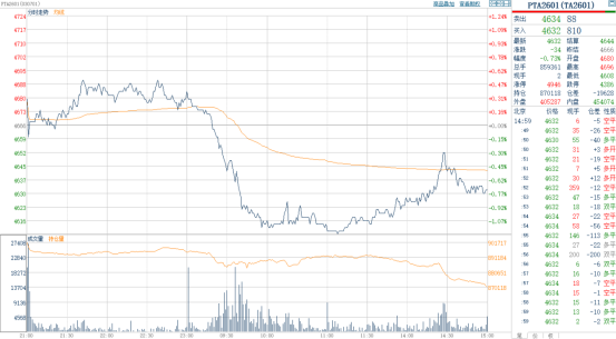 品种盘中持仓量1463731手,较上一交易日增加8412手,其中活跃合约PTA2601,持仓量下跌19628手,总体保持小幅度增仓状态。