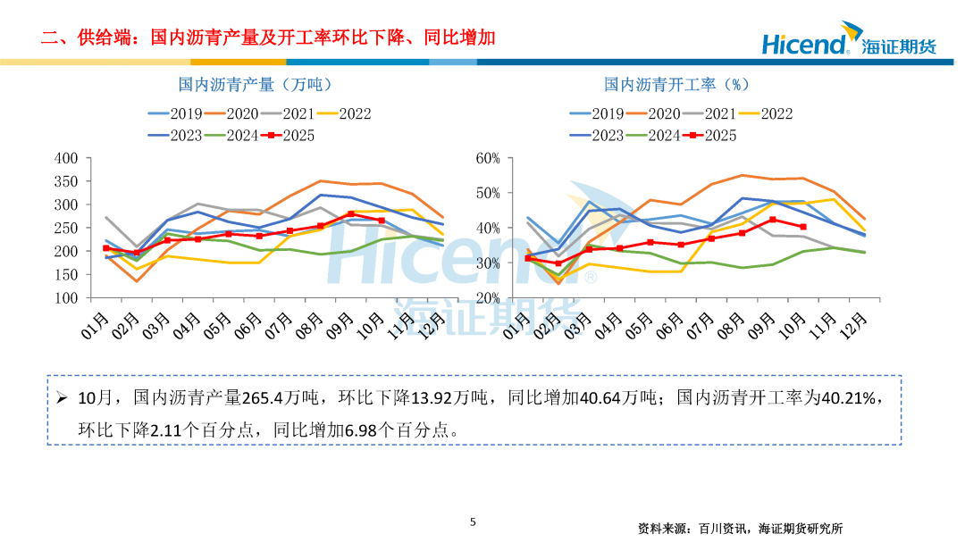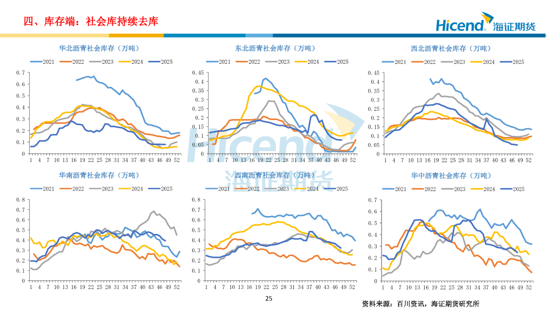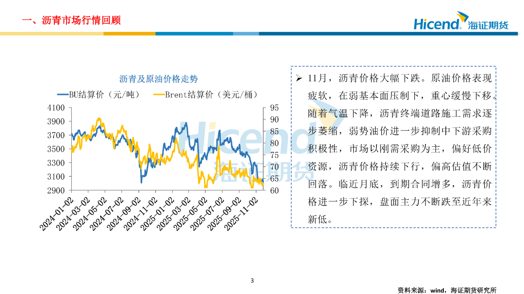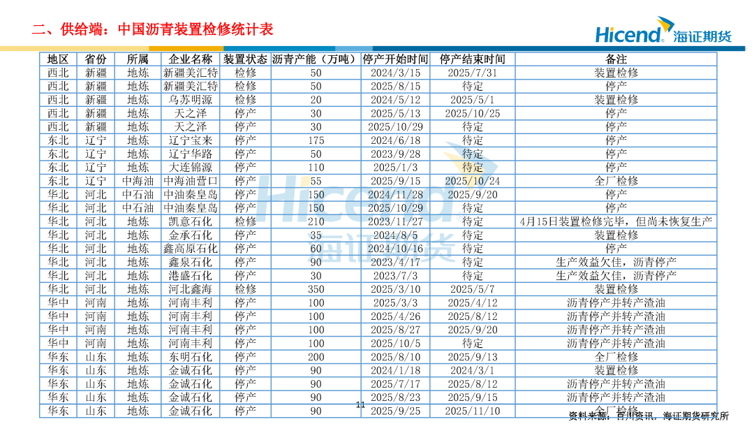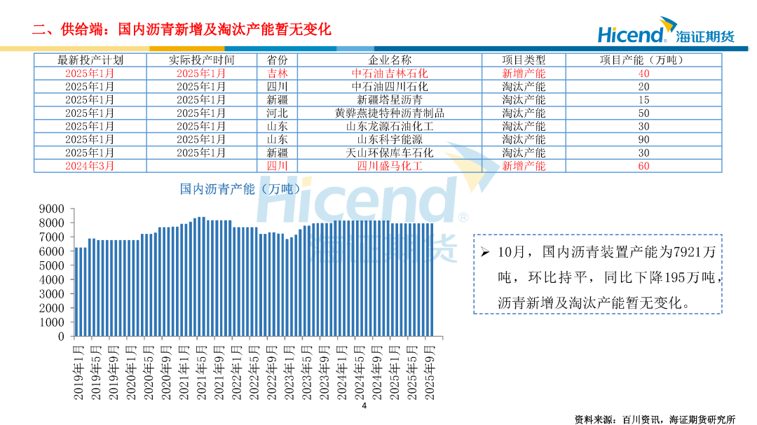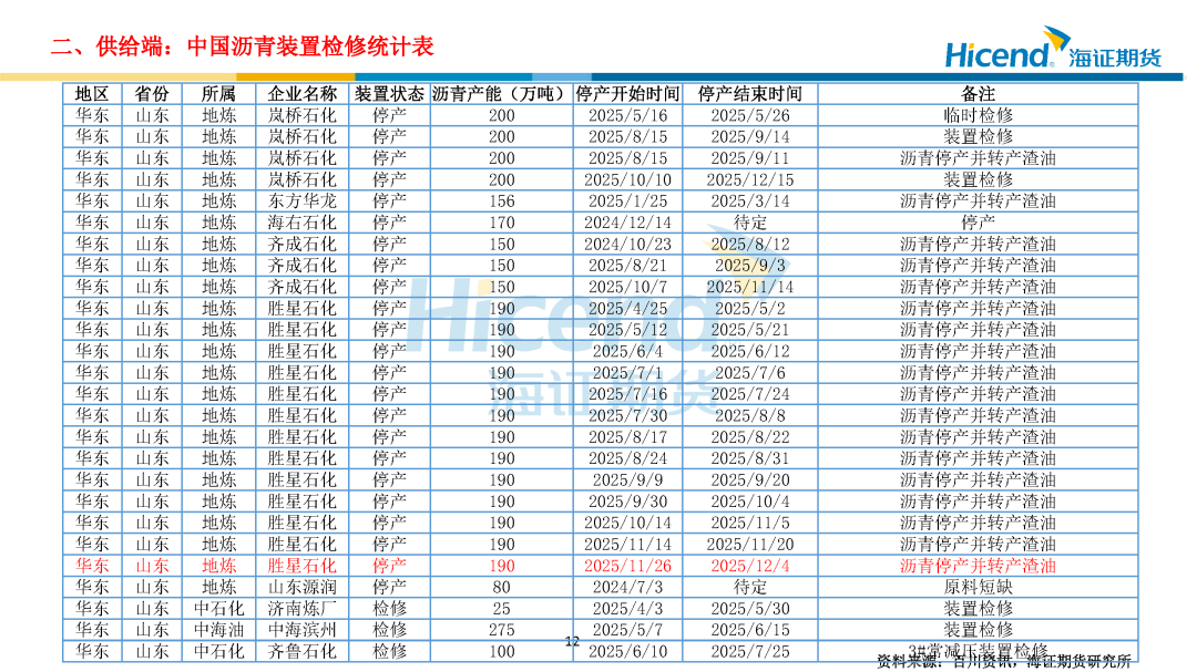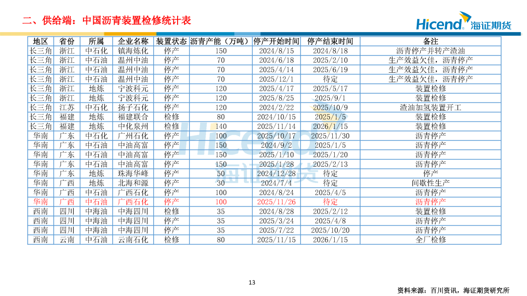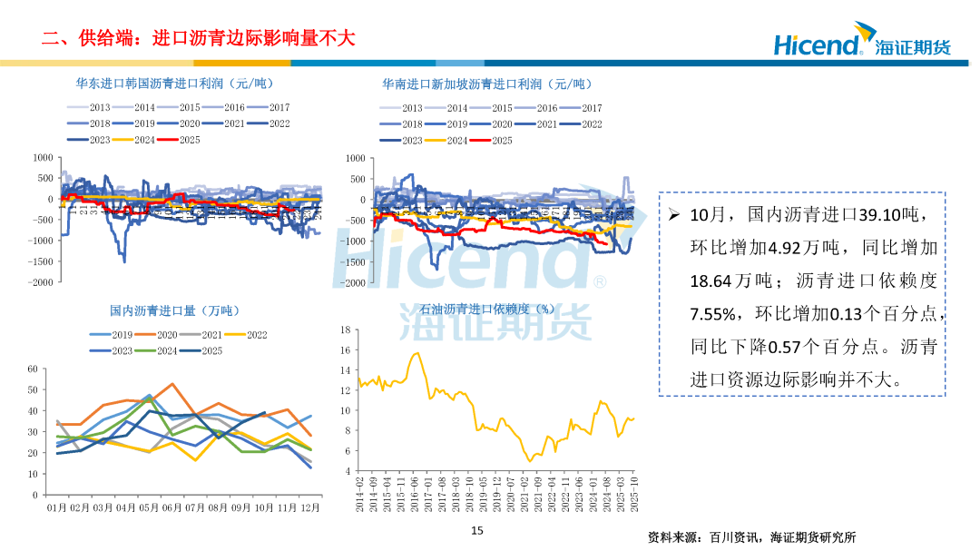 库存端:11月炼厂沥青小幅去库,社会库继续去库。我们预计,12月沥青将延续季节性去库。