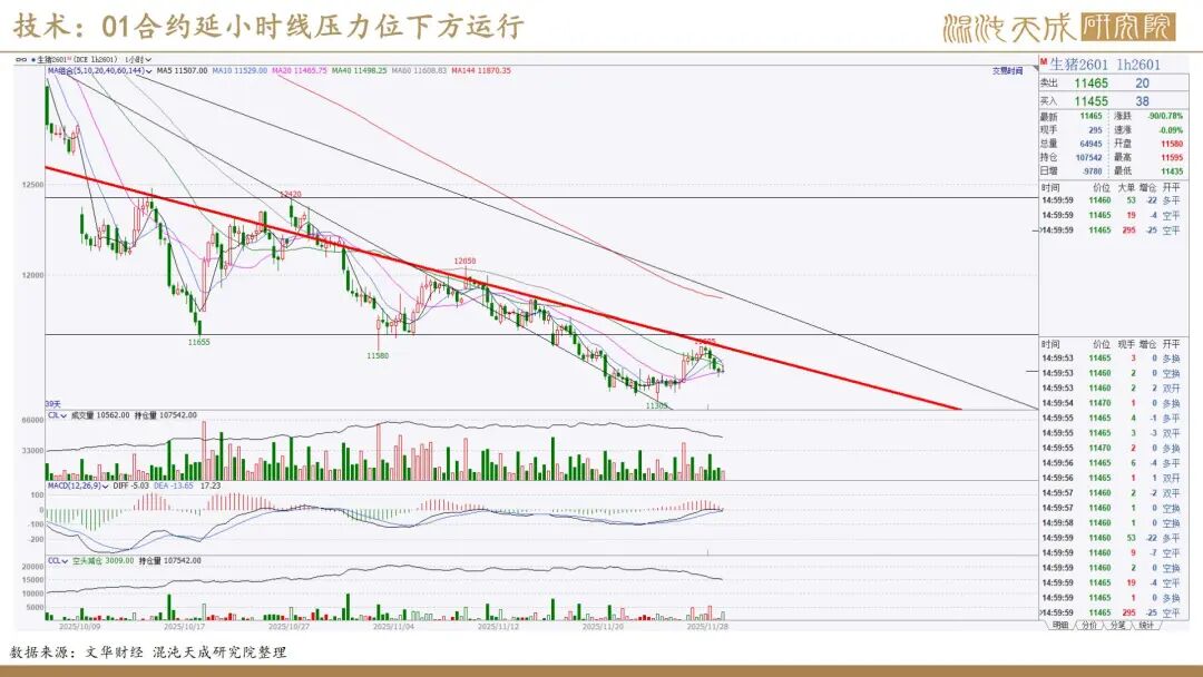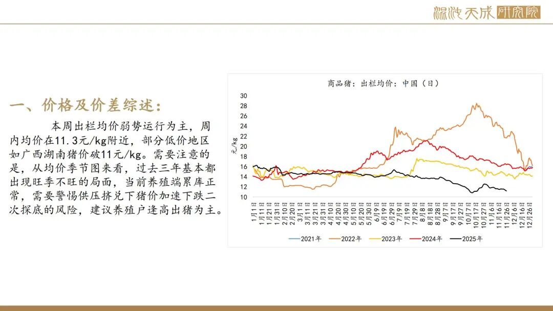 2025年11月27日,中国主流市场外三元大猪市场价格下跌,全国均价为11.47元/公斤,较昨日价格下跌0.51%。11月份集团大场育成大猪猪源总量将继续维持高位且依旧偏充足,中小散场猪源继续处于相对低位但总体继续缓慢恢复增长中,且大肥存栏量依旧偏高,因压栏现象依旧突出,叠加秋冬季大肥需求增加的影响。随着气温继续下降,居民猪肉消费需求量都有望继续增长,月度消耗总量环比将继续维持增长态势不变。总体上11月份商品大猪供应将适度偏紧张,而猪肉供应则依旧明显偏充足且继续维持过剩状态不变。预计11月份月内出栏大猪交易价格先弱后强走势为主的可能性更大,需要提示的是,从生猪供需结构看,充足的出栏大猪供应并不支持猪价的快速和大幅上涨,因此如果月内猪价出现大涨但其持续性存疑,预计11月份有阶段性回调整理机会存在。同时,当下二育需求的增加也在提高12月及1月份的市场风险。