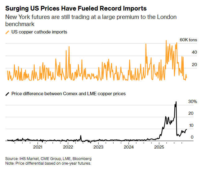 这些最新交易延续了今年铜市的动荡格局:年初,美国总统特朗普首次威胁加征关税后,美国铜价大幅飙升,引发全球铜资源向美集中流动。尽管特朗普最终豁免了精炼铜的关税,但表示将在2026年下半年重新评估这一决定。此后,一系列矿山生产中断导致供应收紧,推动全球铜价攀升至历史新高。