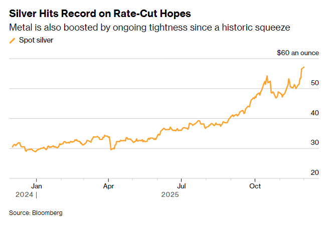 周一,白银价格飙升至历史新高,延续前一交易日近6%的涨幅。此前芝加哥商品交易所(CME)交易中断事件,叠加持续的供应紧张格局与美国降息预期升温,共同推动银价走强。