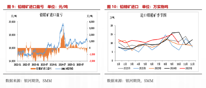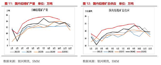 整体看,11月国内铅精矿产量环比仅小幅增加,但进口量级或出现明显减少。预计11月国内铅精矿仍将维持偏紧格局。进入12月国内西北部矿山季节性减产,铅精矿供应或进一步短缺。