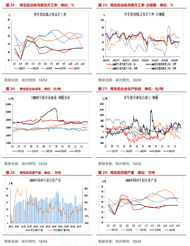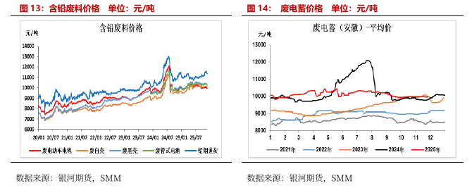 冶炼端:12月国内虽有原生铅冶炼企业检修,但考虑到部分原生铅冶炼企业需完成全年产量任务,且近期原生铅冶炼利润走阔,预计原生铅供应或有小幅增量。再生铅方面,近期铅价虽有下行,但含铅废料价格走低,国内再生铅冶炼企业利润相对可观,复产提产积极性不减,预计再生铅供应或有明显增量。