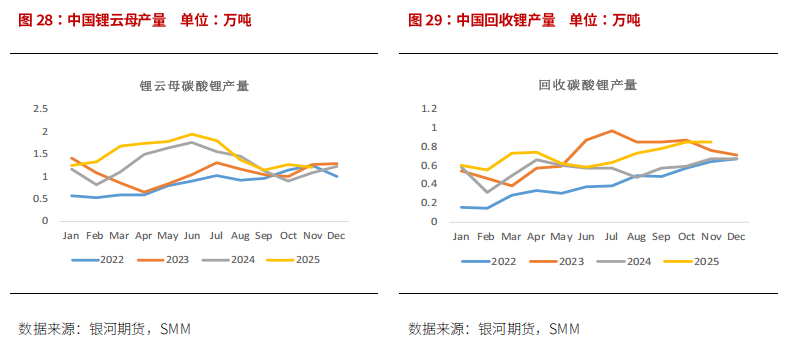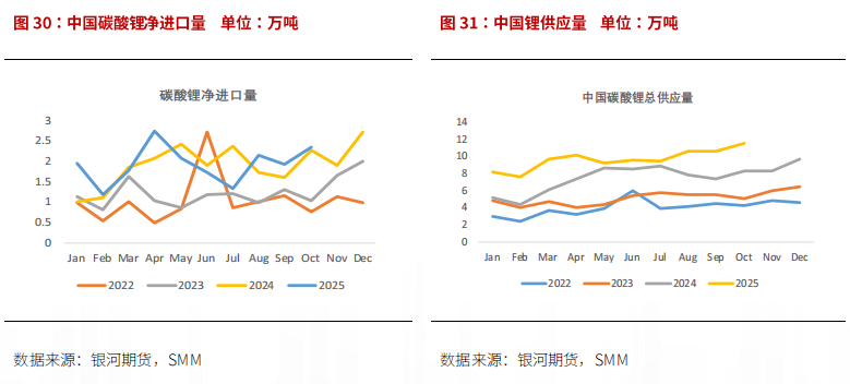 预计11月中国碳酸锂供应量环比小幅增加,12月供应考虑枧下窝复产带来的增量,继续环比增长。