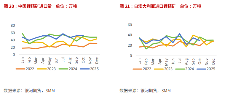 SMM数据显示,2025年1-10月中国进口锂精矿累计同比增长4%至490.4万吨,其中自澳大利亚进口308.7万吨,累计同比增长5%,弥补了尼日利亚和津巴布韦的进口减量。10月国内碳酸锂涨价带动矿价上涨,巴西、非洲矿进口量均有显著提升。三季度数家矿山表现出惜售挺价的情况,四季度更是多家矿山转为拍卖。锂矿价格完全跟随盘面。