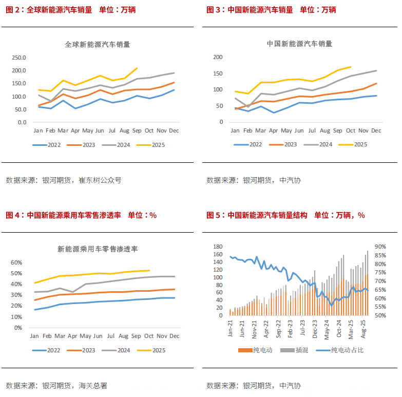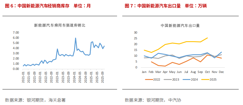 以旧换新补贴成为今年支撑国内新能源汽车消费的重要力量,但自9月开始,部分地区额度用尽,陆续暂停补贴,10月新能源乘用车销量已有走弱迹象。季节性来看,11-12月是年末冲量的月份,预计终端销量增速仍能保持环比增长。但新能源乘用车零售渗透率已经达到60%附近,过去数月基本走平,较难出现大规模增长空间。