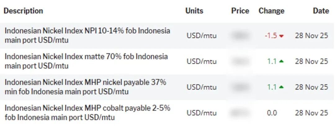 印尼镍指数(INI):需求疲软拖累镍价走势