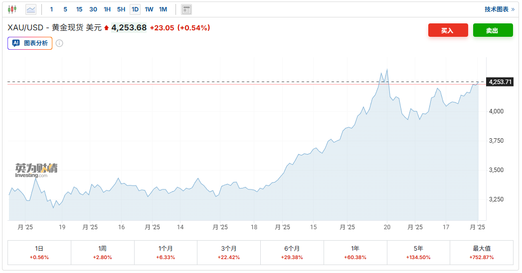 金价在近日迎来反弹,部分原因是对美联储降息预期的重新升温。截至发稿,黄金现货涨0.54%,报4253.68美元/盎司。
