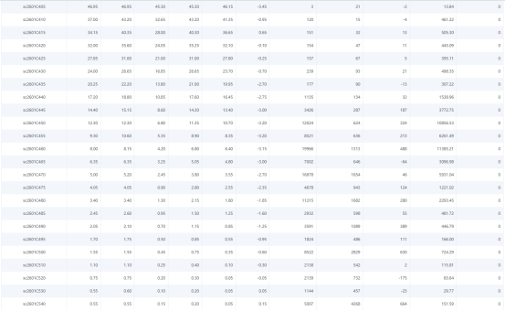 原油期权成交略有回暖,看涨期权行权价区间405-540元/桶,看跌期权集中在375-510元/桶。市场波动率小幅回升,但仍处相对低位,反映投资者情绪趋于中性。