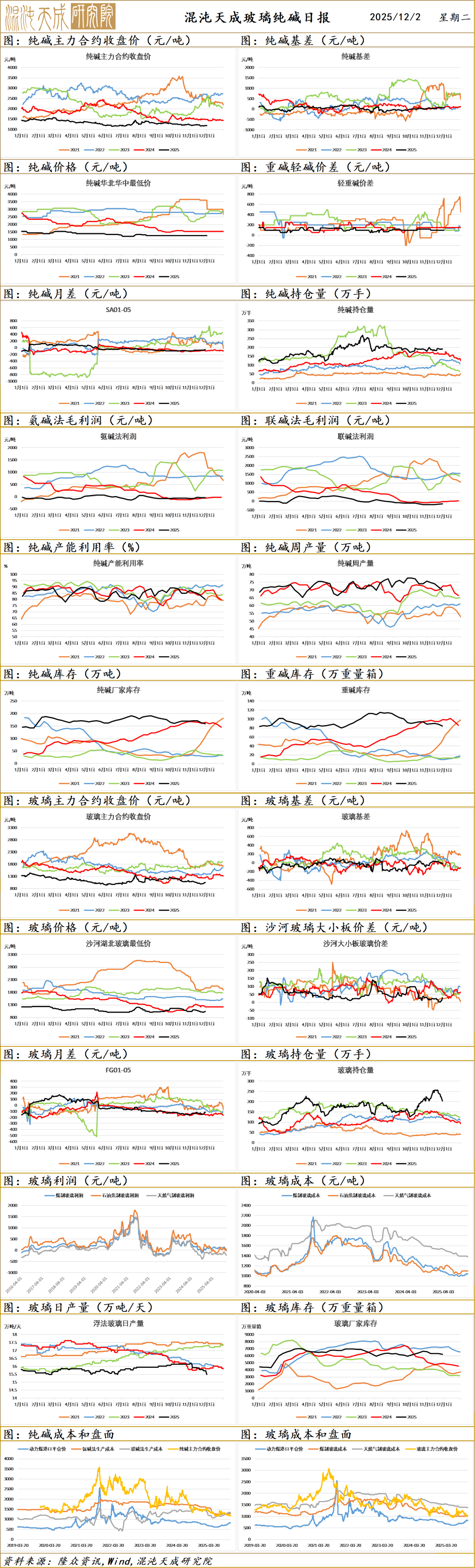 玻璃:今日浮法玻璃现货价格1100,环比上一交易日+6。沙河市场整体出货尚可,厂家库存多降至低位,价格稳定为主,市场售价窄幅盘整。东北市场暂稳,厂家出货情况不一,当地需求偏淡。华中市场近日供应端减量相对频繁,原片企业整体出货良好,多数企业今日顺势提涨价格。周末至今,华东市场重心上行,但成交气氛较前期转弱,月初山东、浙江、江苏零星企业价格走高,而多数趋稳操作,加工厂刚需采购仍是主流。今日广东玻璃价格稳定,目前大板市场优质加工级大板主流商谈1090-1160,普通级价格980-1020,周六华南成交尚可,周日有所放缓。西南区域浮法玻璃价格稳定,成都主流980-1040,云南1000,贵州货源省内出厂价集中在1020-1080,周末本地产销尚可。西北区域浮法玻璃价格暂稳,但整体出货情况一般,北部偏冷区域交投放缓,目前西安当地送到价集中在1180-1220。