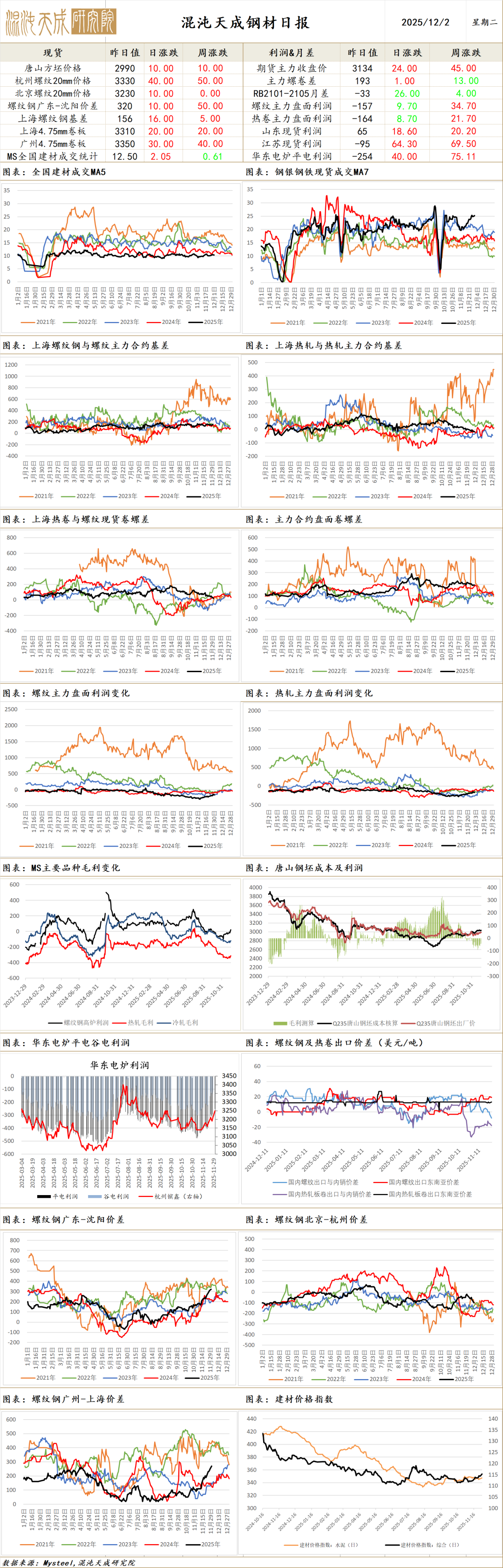 2.据Mysteel不完全统计,11月以来国内21家钢厂发布检修信息,其中,天津天钢计划于2025年12月22日-2026年1月22日双线棒材交替停产检修,预计影响优特钢棒材Φ50-90合计产量12万吨左右;高炉转炉自12月22日起检修45天,预计影响铁水27万吨。