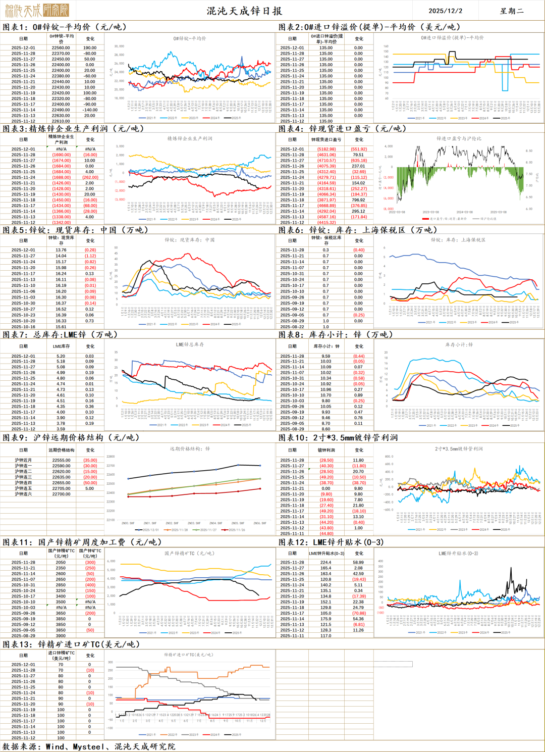 总体来说,美联储12月降息预期持续上行,日央行加息预期引发全球流动性收紧担忧,需持续关注美日利差。内外比价走扩至出口窗口打开,lme注册仓单逐步增加,库存持续累库,国内出口要形成一定量级才能缓解海外供应偏紧的现状(部分企业出口流程不熟悉+可海外交割锌锭流通少),内外比价修复会是一个较长周期的叙事,国内12月存减产预期+国内库存去库,沪锌价格仍有支撑。