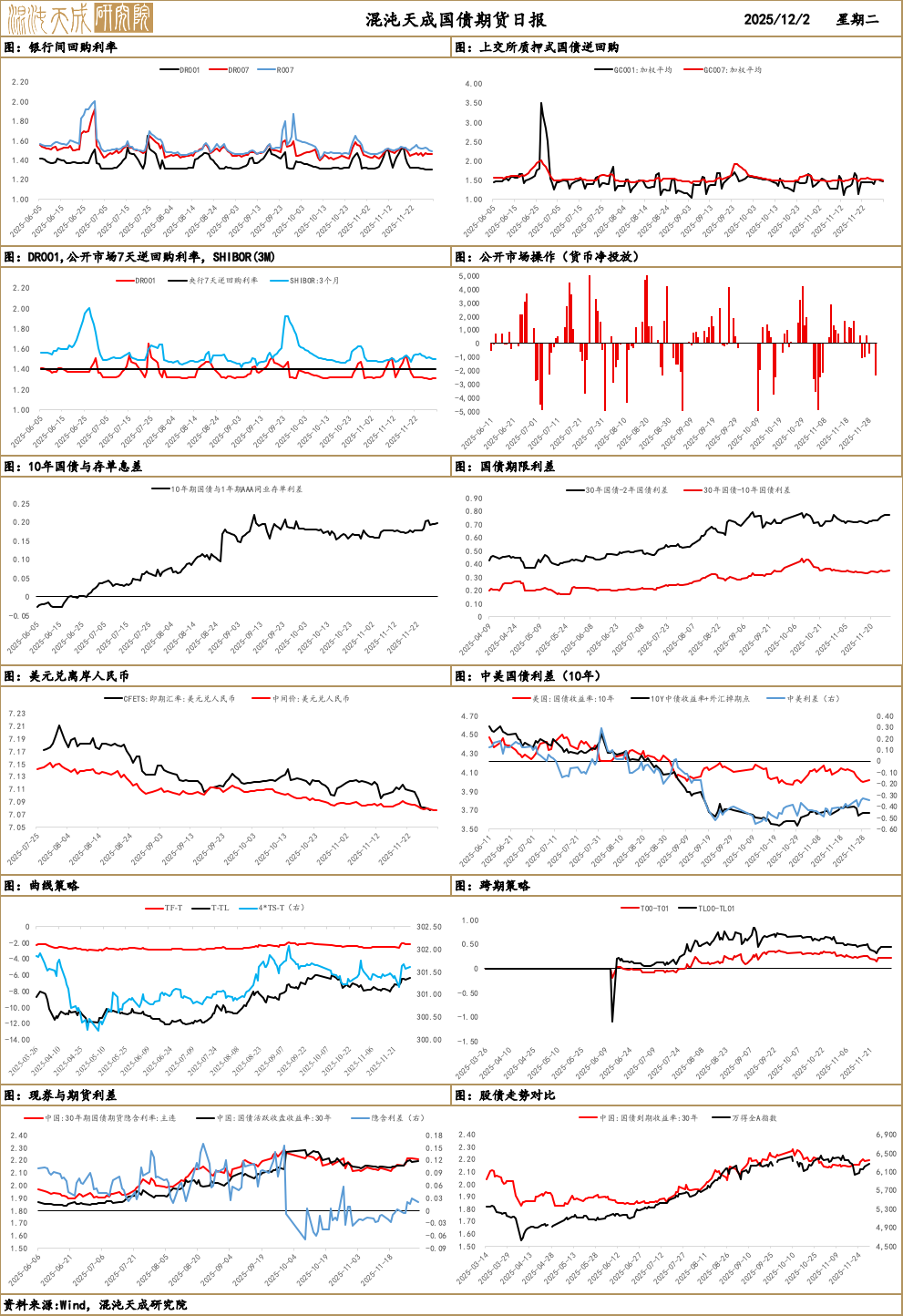 流动性是短期国债市场的核心驱动。央行延续净回笼但月初资金自然转松。微观上,年末基金赎回新规仍然悬而未决,机构提前降久期致期货贴水,成交缩量放大波动;权益赚钱效应吸引存款搬家,国债期货被部分对冲基金用作流动性管理工具,日内与股指反向弹性增强。止盈盘与配置盘博弈,TL上下空间均有限,预计维持震荡偏弱。