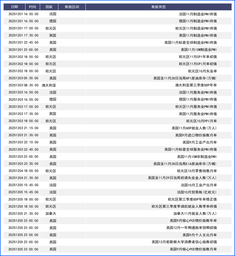 回顾上周,受美联储降息预期、英国预算案、日元干预传闻影响,叠加感恩节假期导致的市场流动性稀疏,多货币对出现大幅波动。美元指数创下7月以来最大的周度跌幅;非美货币则顺势反弹,其中英镑在政策利好下表现出色,日元则在加息与干预风险之间拉锯不定。展望本周,尽管缺少关键10月非农就业和第三季度GDP报告,但仍有包括德国、法国、欧元区、美国等多国重要数据将公布,同时欧洲央行行长拉加德在内多重要官员将发表讲话,政策转向和地缘事件风险依旧存在,投资者需持续关注。