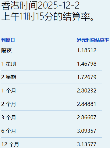 12月2日,港元拆息全线向下,而与楼按相关的一个月拆息报2.80232%,跌13.256基点并连跌三日;反映银行资金成本的三个月拆息报2.86607%,跌7.5基点。