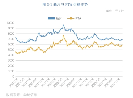 瓶片的主要原料为 PTA和 MEG,其中 PA作为瓶片主要原料在瓶片总生产成本中占比接近 70%。PTA价格上涨会直接导致瓶片工厂的成本增加,通常会引起瓶片价格走强。