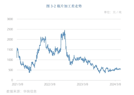 瓶片企业一般采用成本导向定价法,即在生产成本的基础上加上加工利润,作为出厂报价。加工利润与行业供需格局密切相关例如,2018年受海外装置集中停车影响,我国瓶片出口订单大幅攀升,国内供应偏紧,瓶片加工差一度攀升至 3000元/吨以上。2021-2022年,各国逐步走出疫情影响,瓶片需求复苏,但海外瓶片装置普遍复工缓慢,中国瓶片出口订单暴涨,国内瓶片现货紧缺,瓶片加工利润维持高位。2023年以来,我国瓶片装置集中投产,瓶片供过于求,加工差大幅走低。