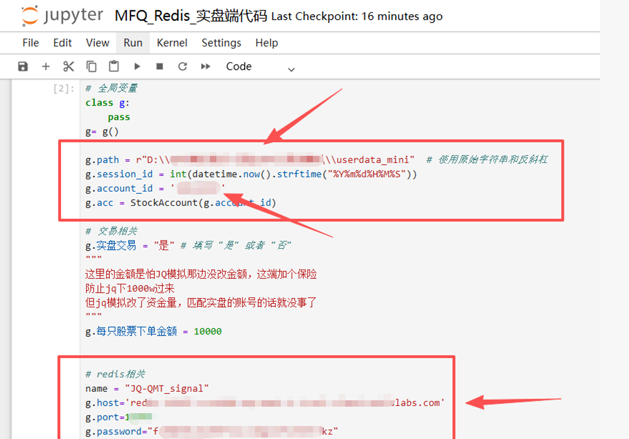 注册后,在聚宽代码里面填写对应的token,把对应参数(host,port,password)填到聚宽代码里。