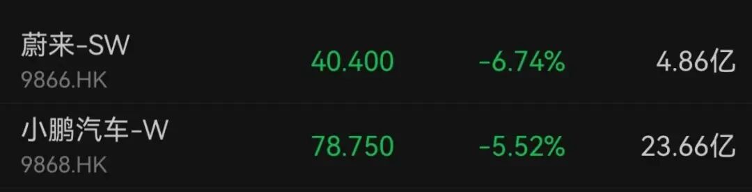 新能源汽车板块中,蔚来下跌6.74%,小鹏汽车下跌5.52%。此外,理想汽车下跌0.78%。
