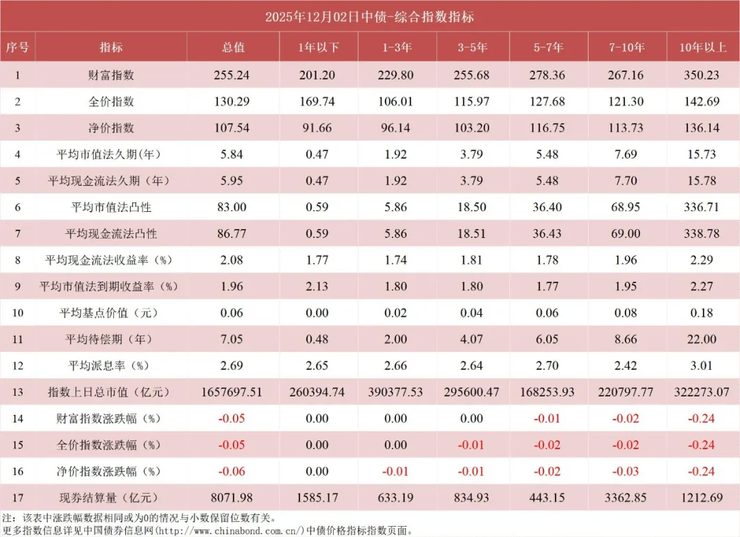 债市值言:中债收益率曲线和指数日评2025年12月2日