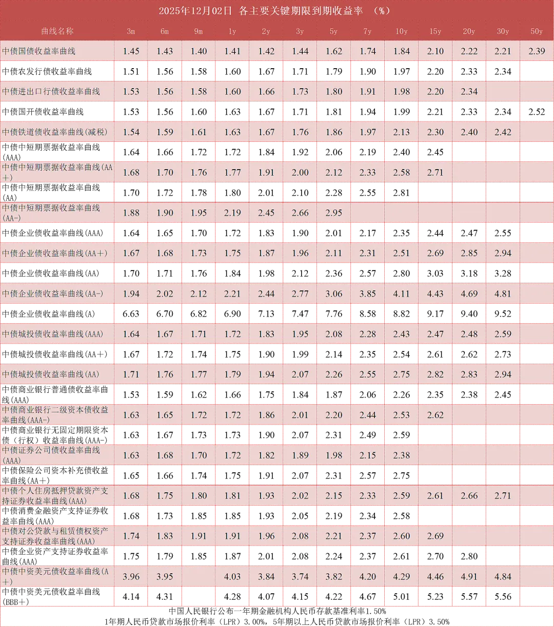 1、中债信用债收益率曲线基于中债市场隐含评级编制。