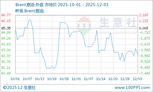 12月2日,国际原油期货下跌。美国WTI原油期货1月合约结算价报58.64美元/桶,跌幅0.68美元或1.1%。布伦特原油期货2月合约结算价报62.45美元/桶,跌幅0.72美元或1.1%。