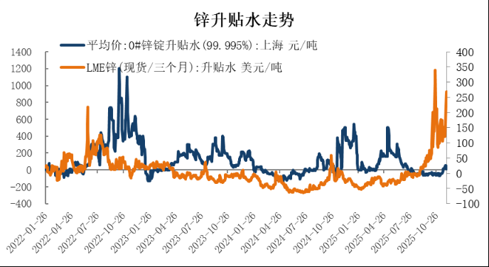总体来看,近期国内精炼锌产量出现超预期下降,其核心驱动在于原料端锌精矿供应持续紧张。进口矿量波动与内外加工费的快速下跌,使得冶炼厂在冬储期间面临显著的原料库存与成本压力。冶炼利润因此被大幅压缩,甚至部分企业陷入亏损,进而被迫主动减产或控产。前期锌价回调后,下游采购意愿较强,库存录得下降,现货升水上涨。因此锌市在供应受限,下游需求存在韧性的情况下,锌价基本面增强,预计运行重心上移,关注22300元/吨位置支撑。