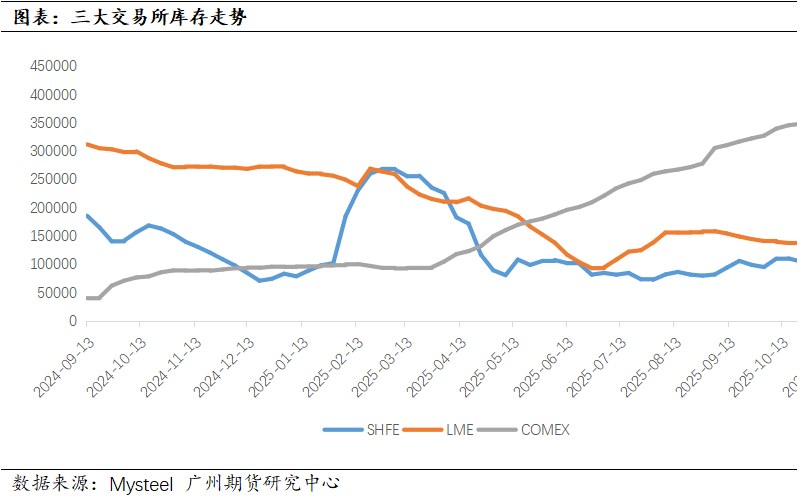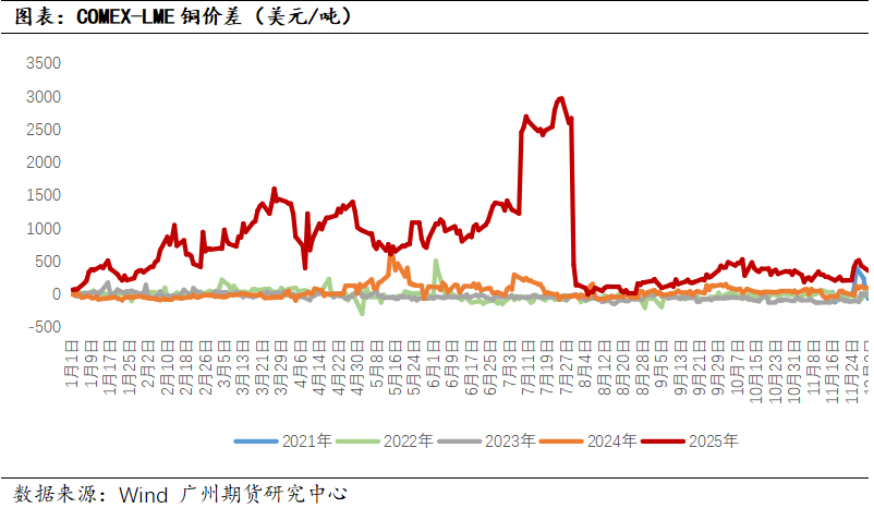 而当下,Comex-Lme价差持续存在,波动范围在200-400美金之间,COMEX铜盘面一直为Contango结构,库存堆积在美国,且因为价差及远期关税预期的存在不会流出,非美市场的流通铜仍是是偏紧的。这可能会导致非美区域现货偏紧格局仍将阶段性出现,尤其是明年二季度需求相对旺季的时间段,届时可关注沪铜正套交易机会。