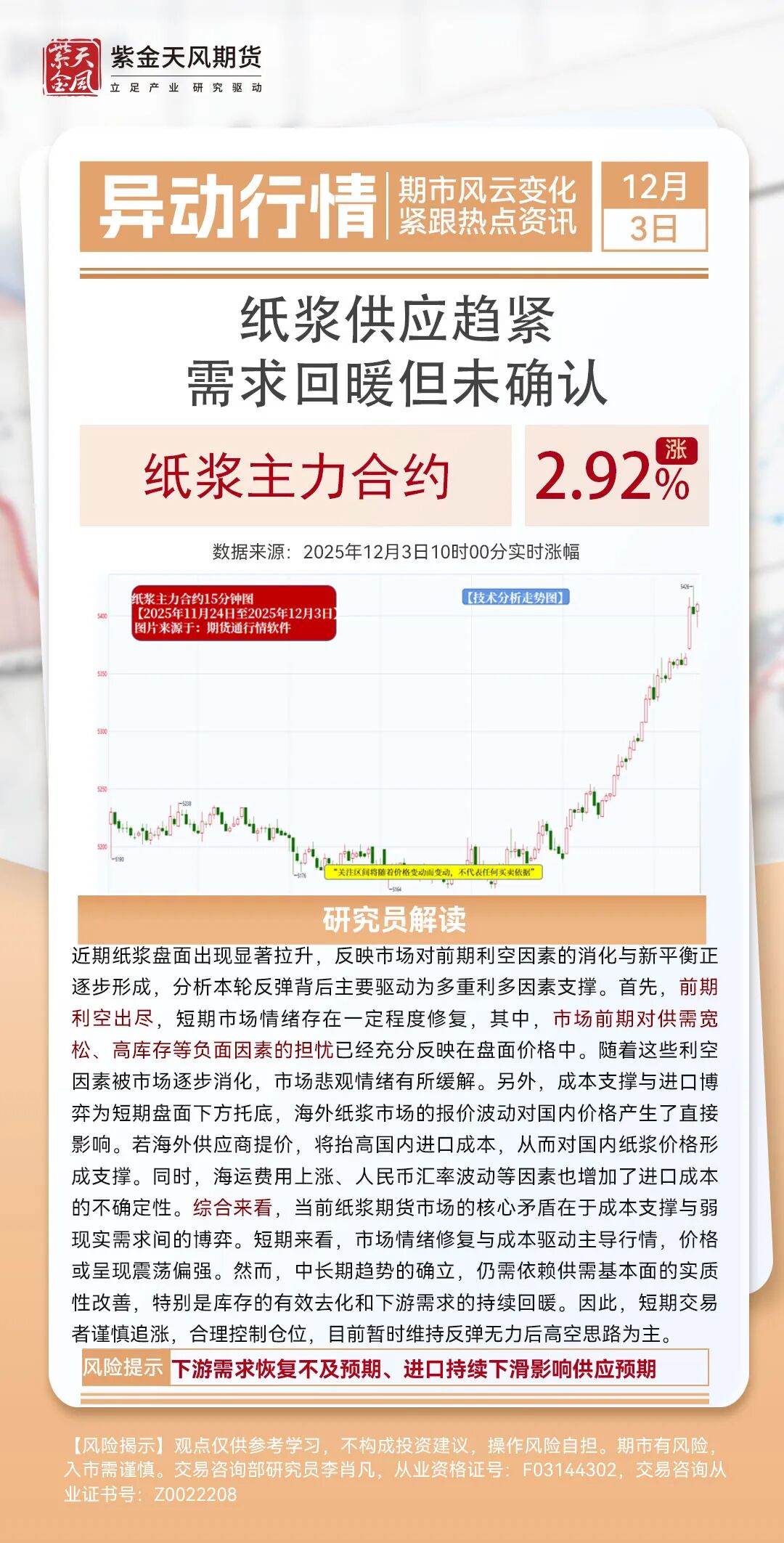 【12月3日异动行情】纸浆供应趋紧,需求回暖但未确认