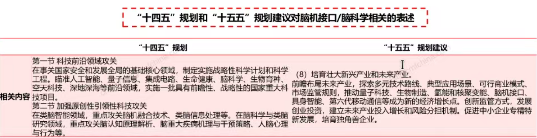 10月28日,“十五五”规划建议发布,建议提出前瞻布局未来产业,推动脑机接口等产业成为新的经济增长点,体现上层对脑机接口产业化的重视。