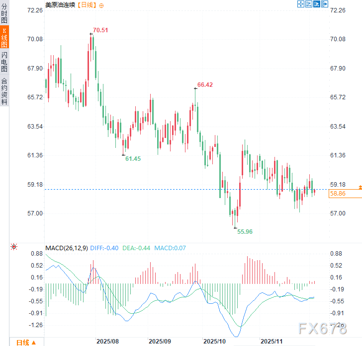 北京时间15:26,美原油连续现报58.93美元/桶。