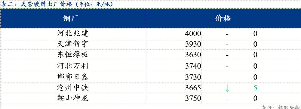今日北方民营钢厂镀锌出厂指导价在3630-4000元/吨。