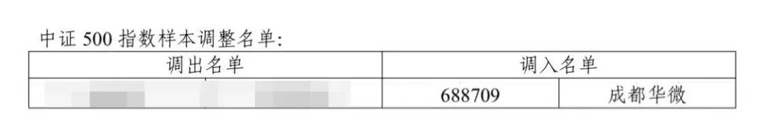 近日,中证指数有限公司公布最新一期中证500指数样本名单,成都华微(688709)凭借稳定的市场表现和行业影响力,成功纳入中证500指数。本次调整将于12月12日收市后生效。