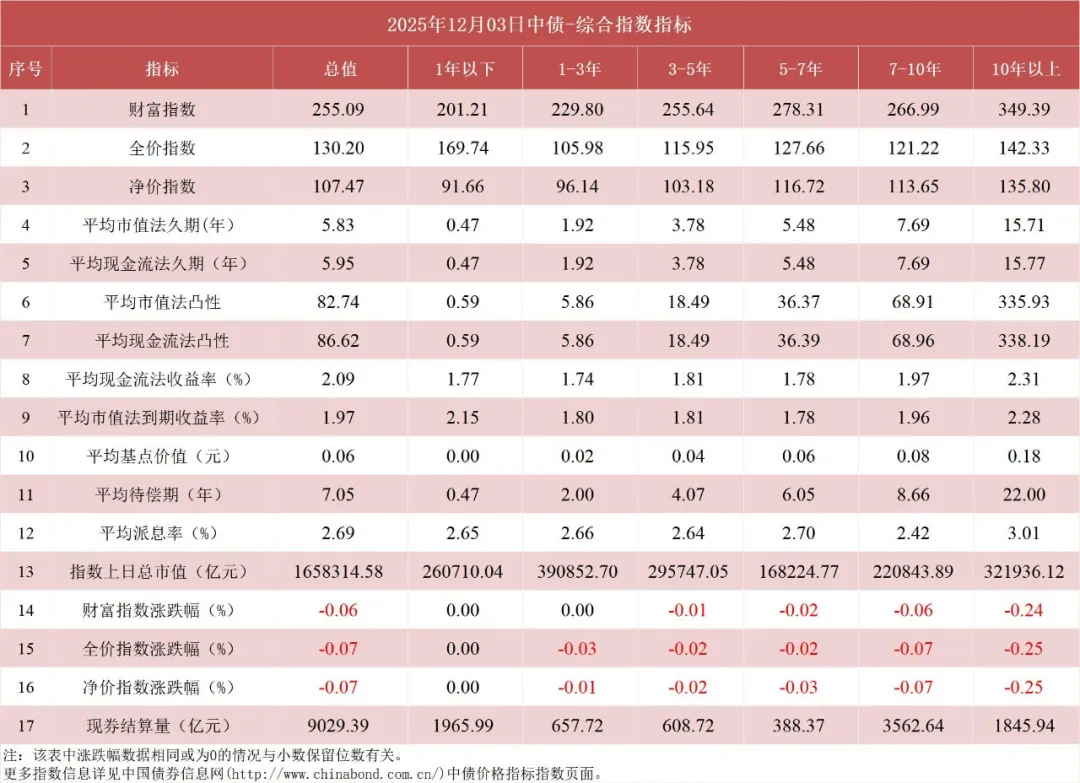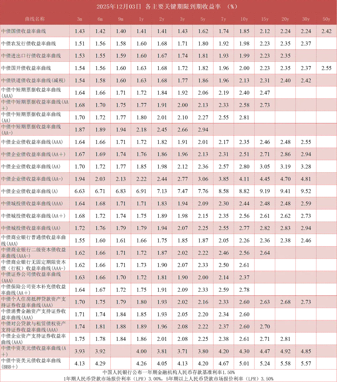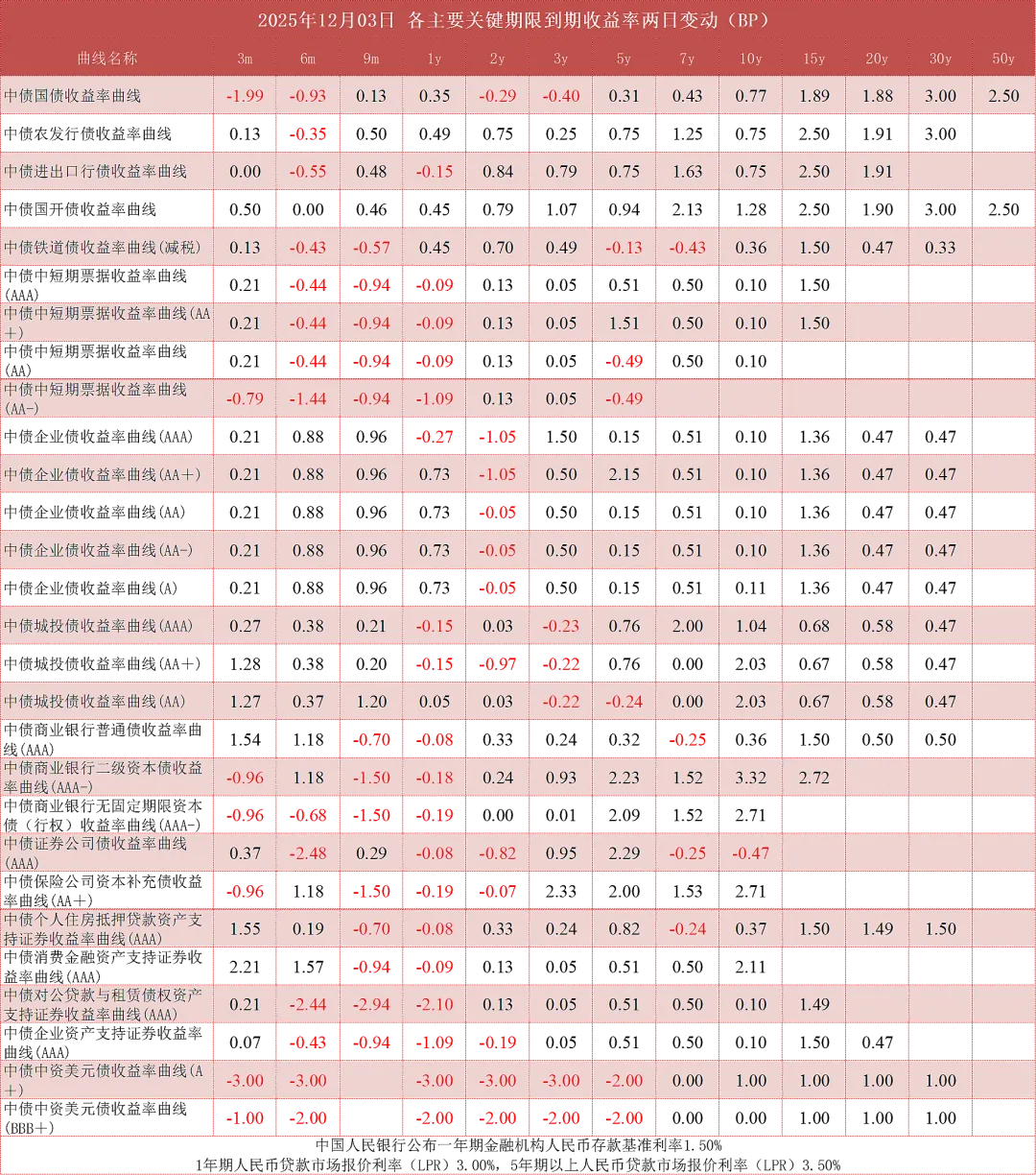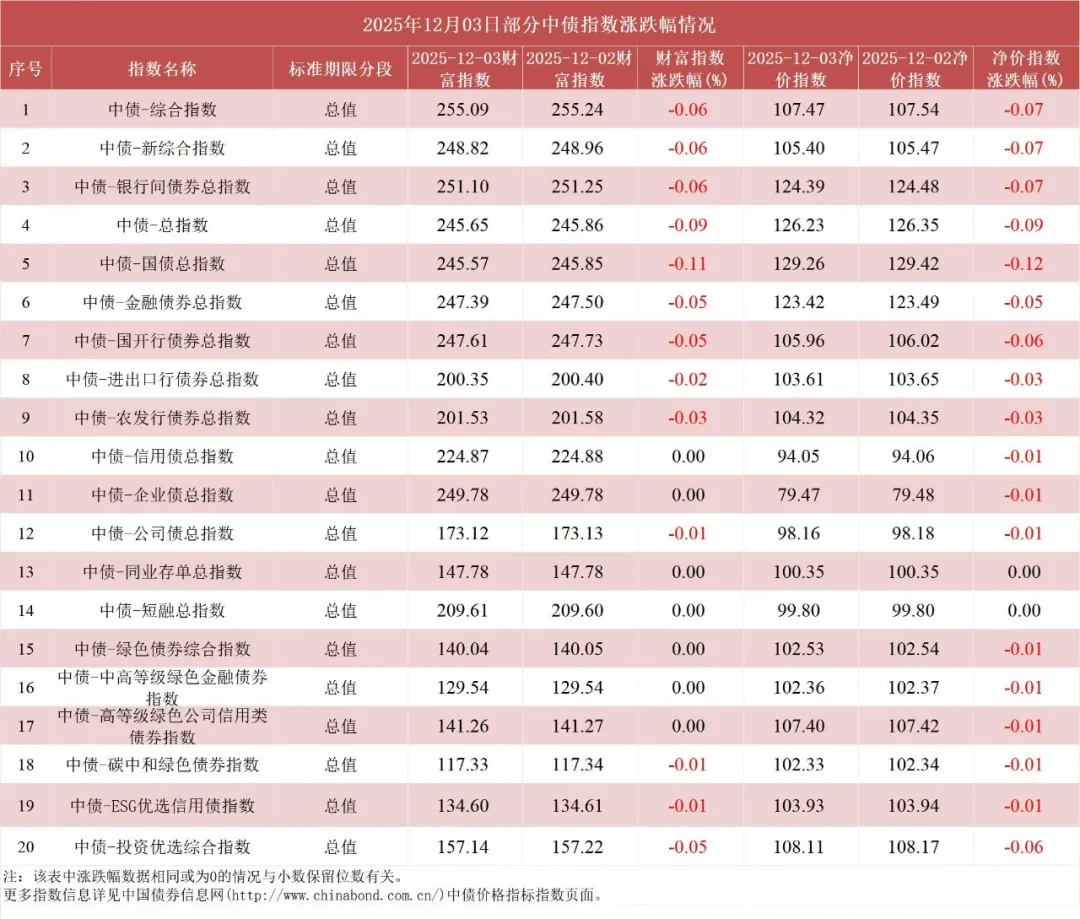债市值言:中债收益率曲线和指数日评2025年12月3日