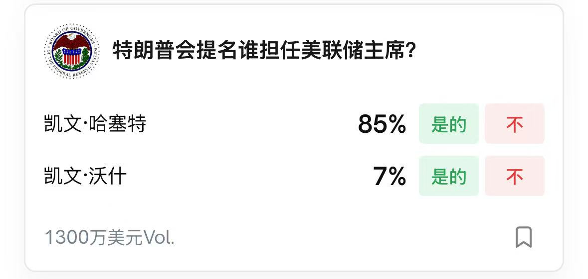 截至12月3日,在Polymarket预测平台上,哈塞特获得提名的概率已攀升至85%,大幅领先其他候选人。Timiraos在日前的报道中指出,特朗普日前告诉记者"我知道我要选谁",当被问及是否是哈塞特时,他只是笑而不语。哈塞特拥有其他候选人所不具备的优势,他满足了特朗普的两个关键标准:忠诚度,以及在市场中的公信力。