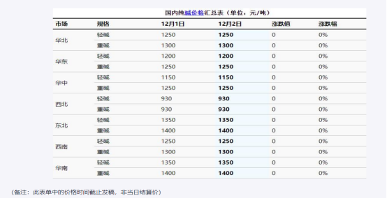 近期纯碱装置小幅调整,个别企业降负生产,整体供应小幅下滑。截至12月1日国内纯碱开工率80.65%,开工率提升,部分装置检修结束。