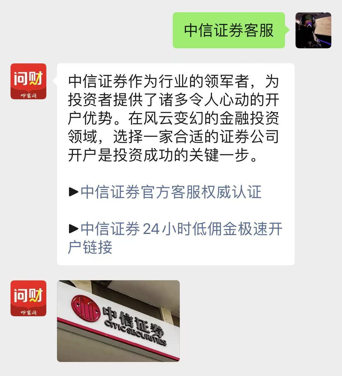 推荐关注【叩富问财】公众号,通过“公司对对碰”功能获取中信证券客户经理联系方式,具体步骤如下: