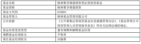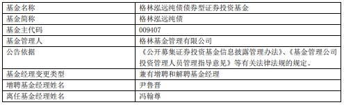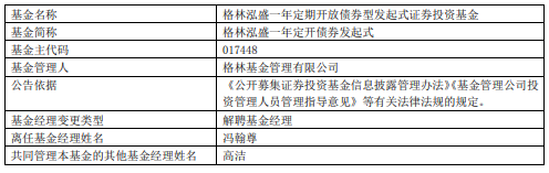 冯翰尊离任格林基金旗下5只基金