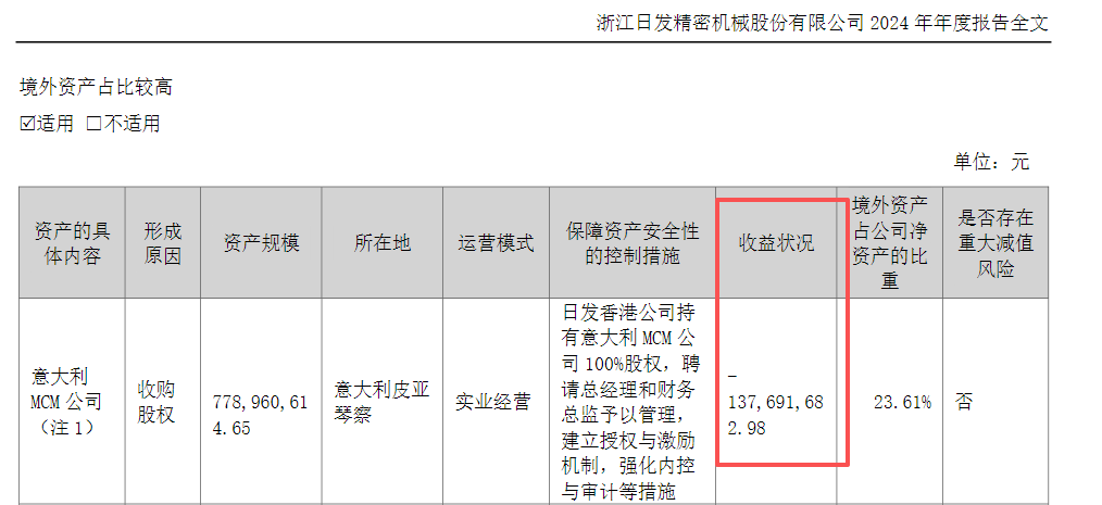 由于在机床业务上的互补关系,且在海外业务拓展过程中的积极作用,日发精机也曾为MCM公司提供资金纾困,但“该等资金能否有效挽救意大利MCM公司运营仍存在重大不确定性”,日发精机放弃继续对其资金支持。