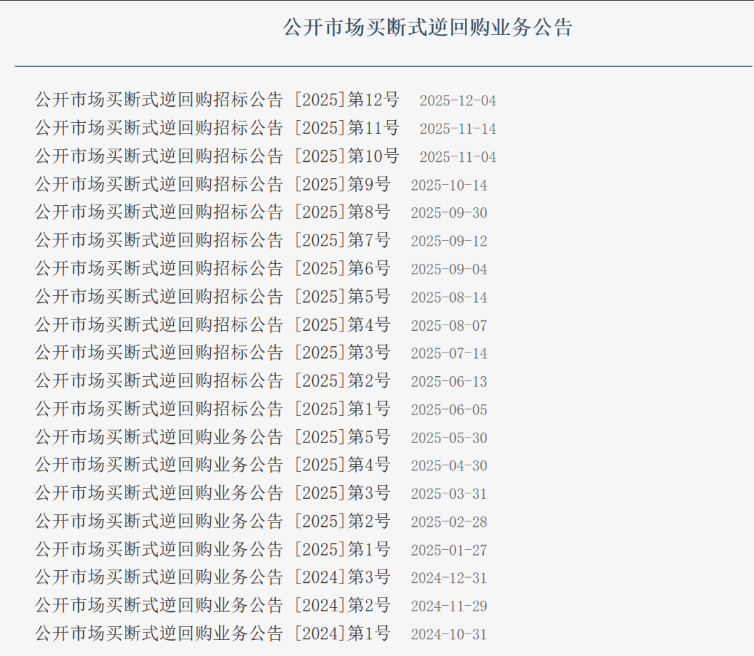 买断式逆回购推出于2024年10月,是中国人民银行主动借出资金,从一级交易商购买债券,来向市场投放流动性的操作。该工具可增强1年以内的流动性跨期调节能力,有助于提升流动性管理的精细化水平。截至2025年12月,央行已开展了多次买断式逆回购操作。