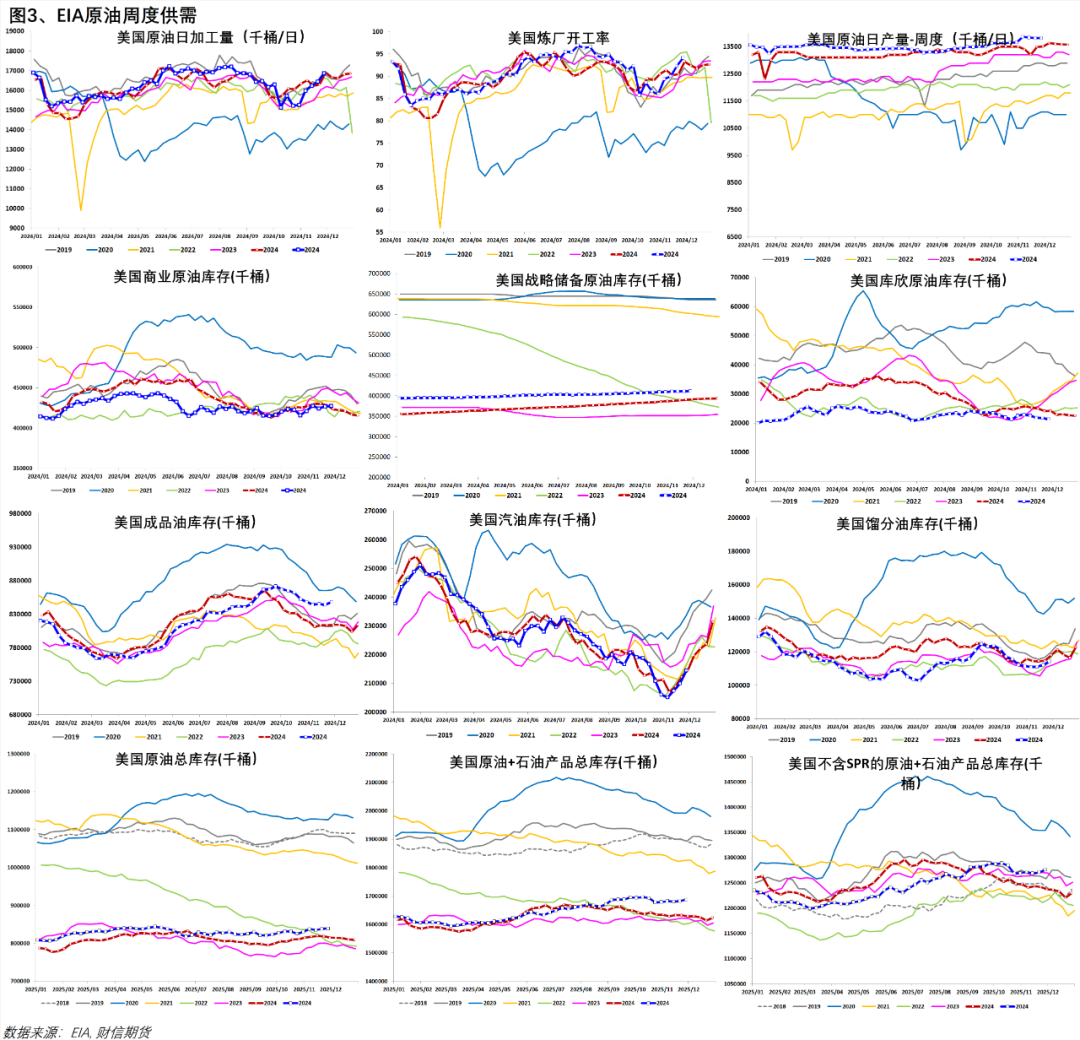 综合来看,原油市场基本面驱动有限,美国成品油需求出现明显下滑,国内柴弱汽稳,基本面中性偏弱。俄罗斯能源出口、美国委内瑞拉等地缘存在较大不确定性,或带来市场博弈加剧,预计价格震荡运行。
