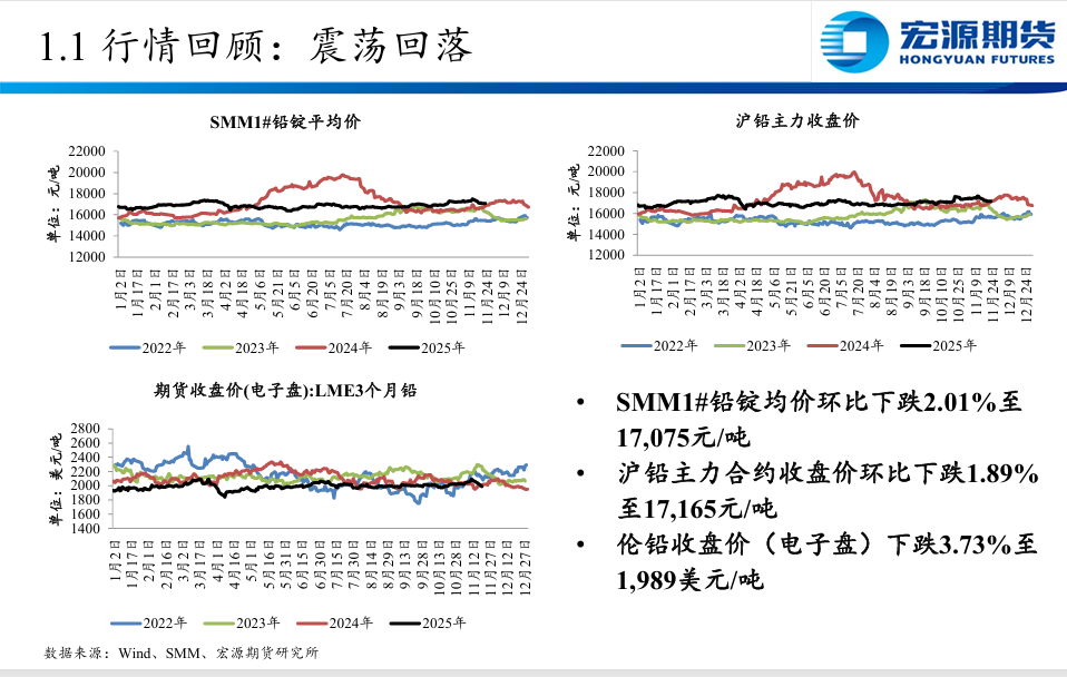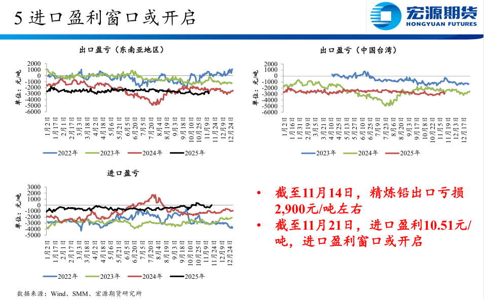沪铅2511合约交割结束后,部分交割货源重回现货流通市场,铅价震 荡回落,下游按需补库,考虑消费暂无明显好转,且成本端支撑略有松动,预计短期铅价震荡偏弱整理, 但下方空间较为有限,前期空单注 意利润保护。后续持续关注原料端 到货对炼厂开工影响。