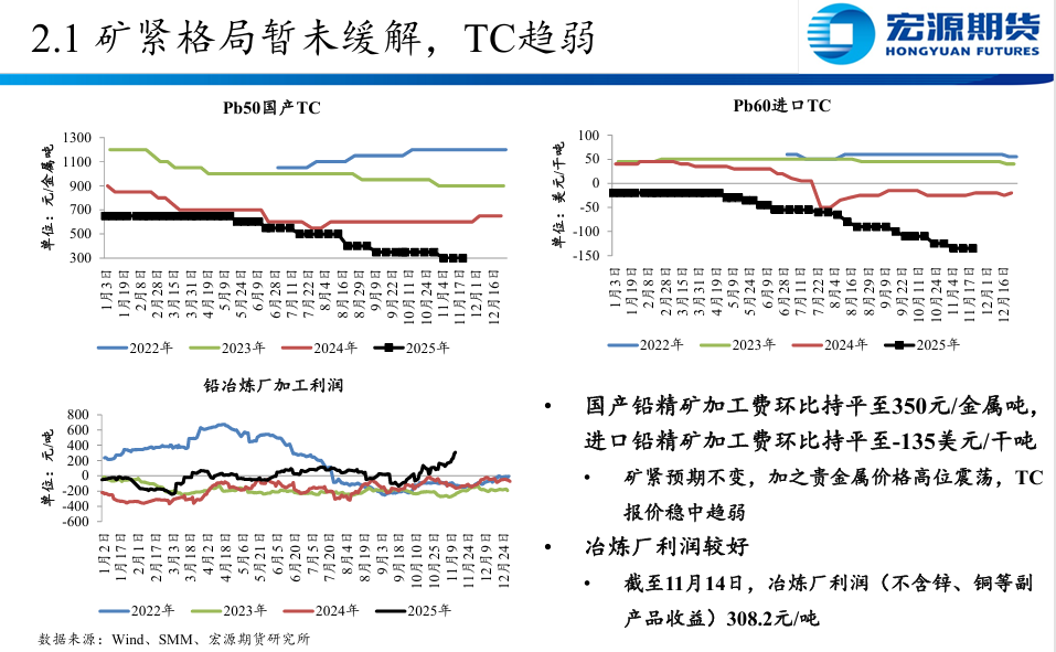 原料-铅精矿:持续偏紧。目前进口矿几乎无报价的现状 持续,2026年的长单贸易商仅提供远期最少供货数量,但 不锁定加工费报价;国内贸易市场上,河南、内蒙古等地 区炼厂持续按需采购,银价上涨带来的溢价基本体现在 TC报价内,若后续银价回调,TC报价或将小幅补涨。