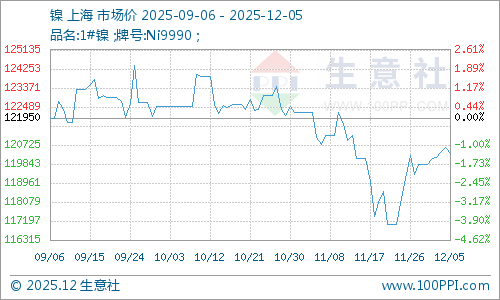 据生意社镍价格监测,本周镍价小幅上涨。截止周末,现货镍报价120316.67元/吨,较周初上涨0.17%,同比下跌5.31%。