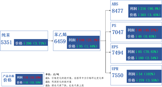 一、苯乙烯产业链价格、利润传导图