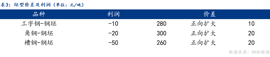 从品种价差来看,今日唐山钢坯与工字钢、槽钢、角钢价差正向扩大。