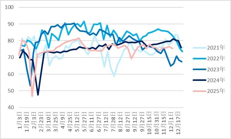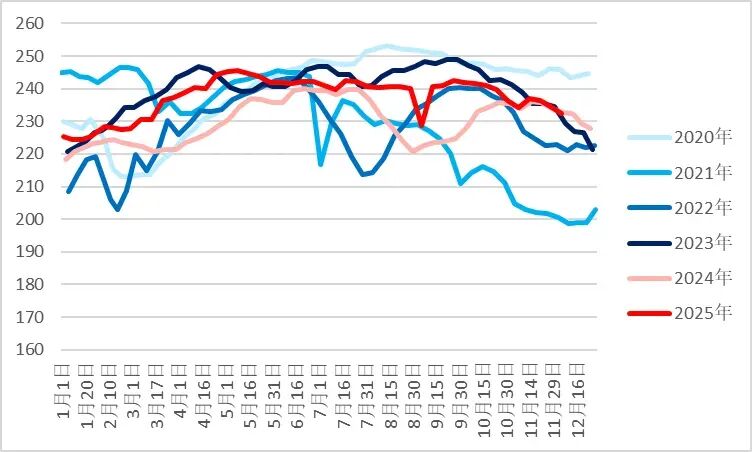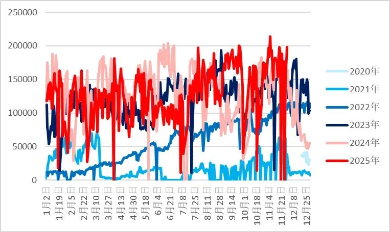 从供应端来看,国内煤矿供应仍然相对偏紧。国内原煤生产最新数据显示,12月05日523家矿山炼焦原煤日均产量回落至190.42万吨/日,已明显低于同期水平,同比去年同期207.06万吨/日降幅达到8.03%,523家矿山精煤产量也处于下降通道,12月05日钢联数据显示精煤产量为75.37万吨/日,较去年同期精煤产量81.08万吨下降7.04%。近期,山西部分等地因即将完成全年生产计划有减产动作,到中下旬减产或将有所增加,后续国内供应来看仍处于偏紧状态。然而,国外煤矿供应却处于高位,尤其蒙煤近期进口处于冲量阶段,甘其毛都口岸蒙煤通关量维持在高位19-21万吨/日附近,近月交割压力大,且蒙古国总理建议蒙古国以后年度对华煤炭出口的实物量增加至1亿吨,2024年度出口至我国为8300万吨,2025年度截至10月出口至我国煤炭为6941万吨,预计12月蒙煤通关仍将维持高位。总体来说,虽国内供应偏紧,但国外煤炭通光量处于高位,尤其蒙煤的供应冲量,使得焦煤总供应边际递增。