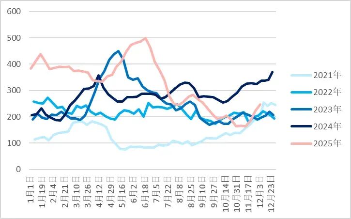 然而,后续来看,国内宏观12月中上旬即将召开政治局会议以及经济工作会议,叠加12月中下旬的冬季补库需求逐步开启,且国内煤矿完成全年生产计划后在12月中下旬减产计划或增多,以上因素对焦煤价格来说或是企稳回升的转机。策略上不建议单边抄底操作,风险较大,若坚持单边操作需等矿端库存拐点显现、冬季补库需求开启或宏观有利好因素释放下,待价格企稳后择机轻仓试多05合约,套利上由于明年反内卷以及超产等政策约束下,国内未来供应仍有偏紧预期,叠加明年是“十五五”开年第一年,市场对未来预期更强,01-05合约临近交割注意及时平仓,建议可择机换至05-09反套策略。