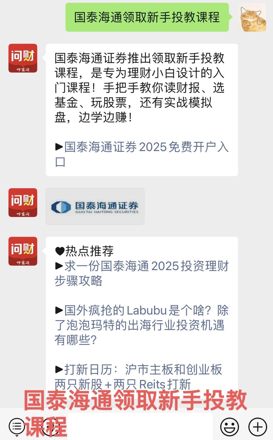 在公众号对话框回复关键词“开户宝”→ 系统将自动分配专属理财顾问 → 推送国泰海通证券低佣金开户链接及客户经理联系方式。